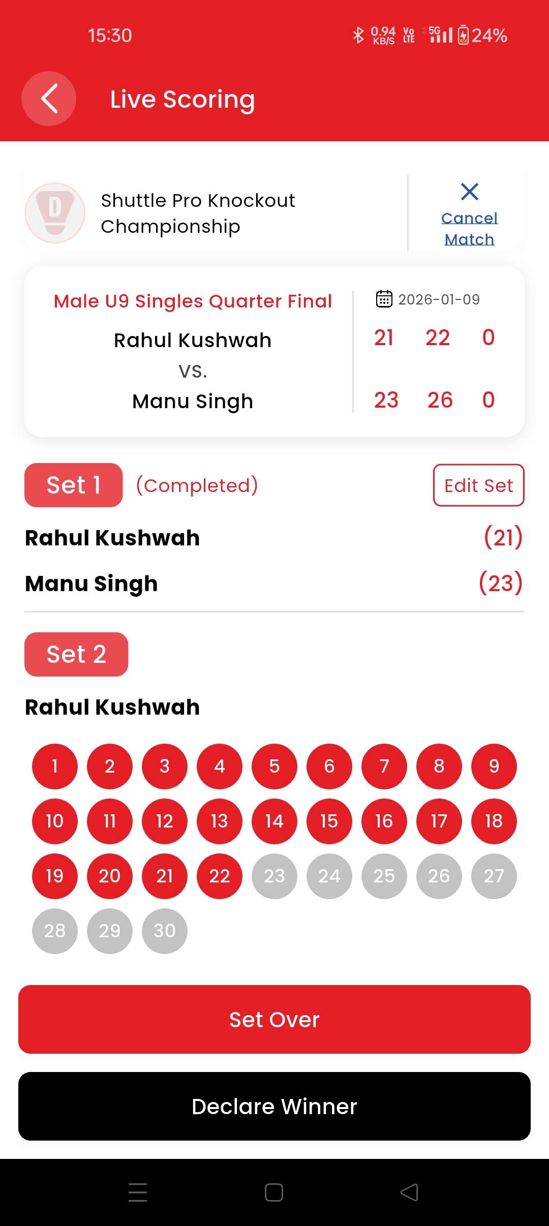 Dream Shuttlers has incorporated all aspects of game play and scoring. They also have clear and appropriate access control mechanisms. This helped us a lot in scoring, tabulating, publishing and viewing the tournaments digitally.